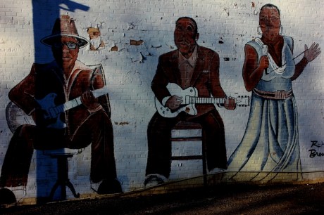 Muddy Waters in the Mmiddle, Clarksdale blues district, photo, Brad Hardisty